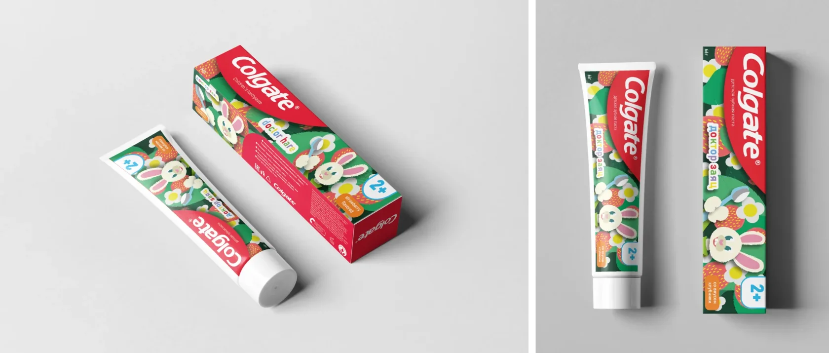 упаковки детской зубной пасты Colgate, дизайн которой